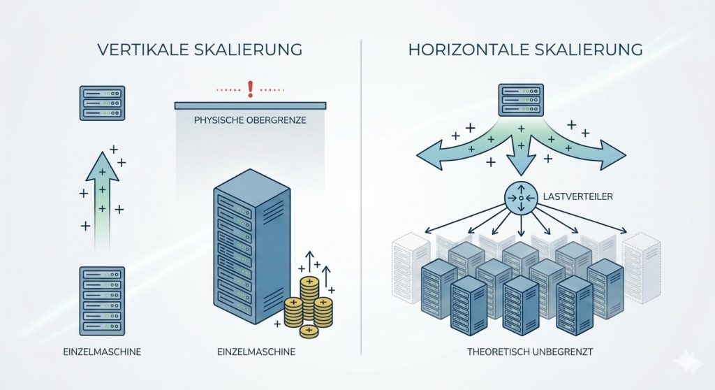 • Vertikale Skalierung (Scaling Up): Kauf eines grösseren, leistungsstärkeren Motors. Das ist einfach, aber teuer und stösst letztendlich an eine physische Grenze.