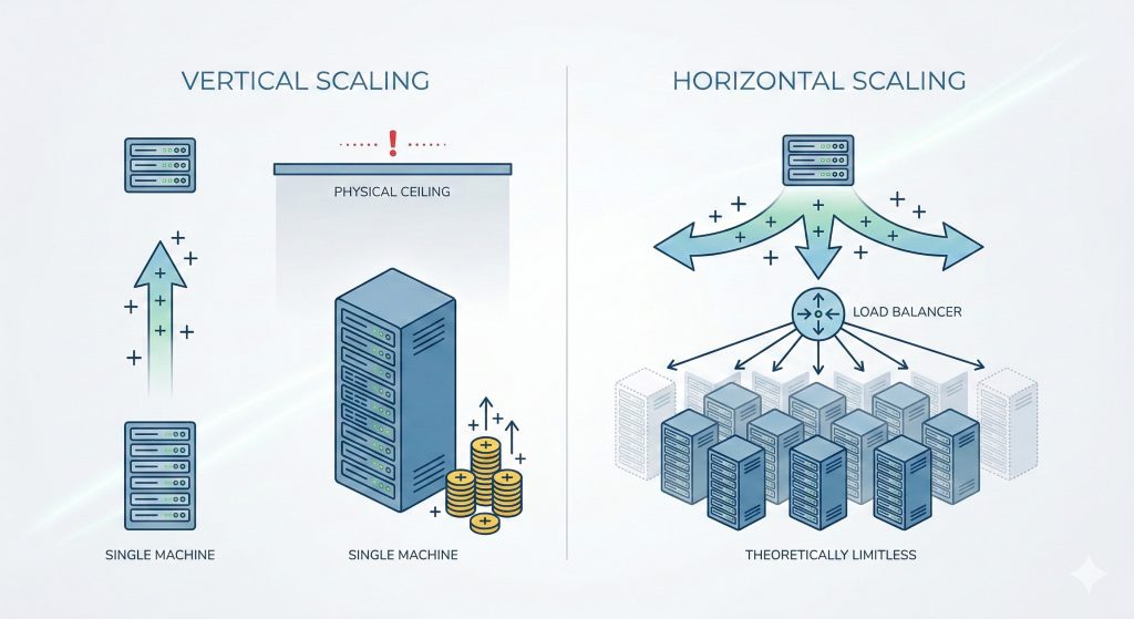 - Vertical Scaling (Scaling Up): Buying a bigger, more powerful engine. It’s simple but expensive and eventually hits a physical ceiling.